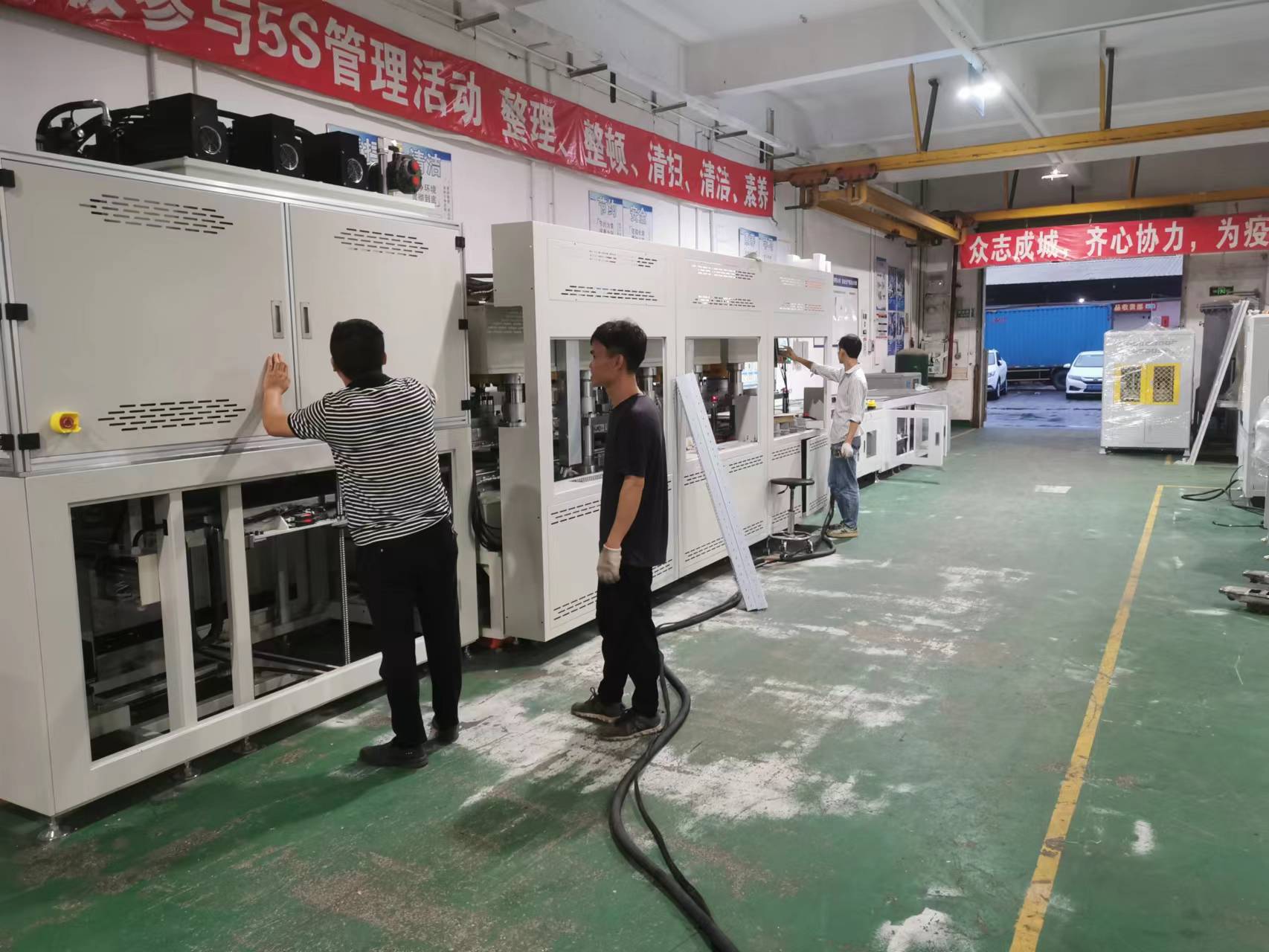 電池模組側(cè)板貼絕緣膜治,包括蓋板,底板以及設(shè)置在底板上的限位側(cè)板,第一限位模塊,第二限位模塊;限位側(cè)板,第一限位模塊,第二限位模塊圍合形成用于對(duì)電池模組的四個(gè)側(cè)邊進(jìn)行定位的定位區(qū)域,限位側(cè)板用于對(duì)電池模組包裹有絕緣膜的一側(cè)邊進(jìn)行定位和壓緊,第一限位模塊用于對(duì)電池模組側(cè)板遠(yuǎn)離包裹有絕緣膜的另一側(cè)邊進(jìn)行定位,第二限位模塊用于對(duì)電池模組側(cè)板的左右兩側(cè)分別進(jìn)行定位,蓋板設(shè)置在底板上方,用于將層疊在一起的包裹有絕緣膜的電池模組側(cè)板壓緊在底板上.本申請(qǐng)對(duì)電池模組側(cè)板的側(cè)邊包裹貼覆絕緣膜時(shí),可以防止絕緣膜與側(cè)板的側(cè)邊產(chǎn)生氣泡和間隙,保證絕緣膜與電池模組側(cè)板的側(cè)邊可以非常好的貼合在一起.